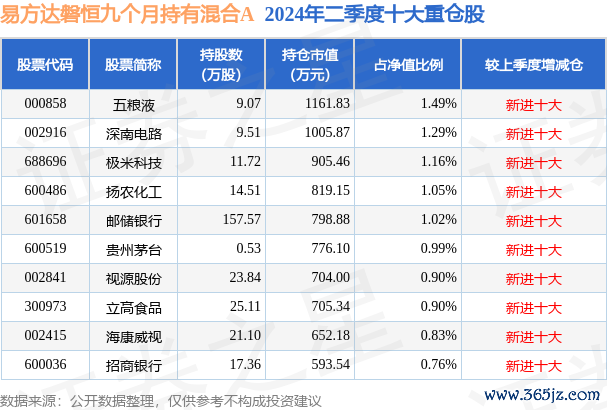 易方达磐恒九个月握有搀和A为搀和型-偏债基金,凭证最新一期基金季报知道,该基金财富设立:股票占净值比15.67%,债券占净值比113.23%,现款占净值比1.96%。基金十大重仓股如下: